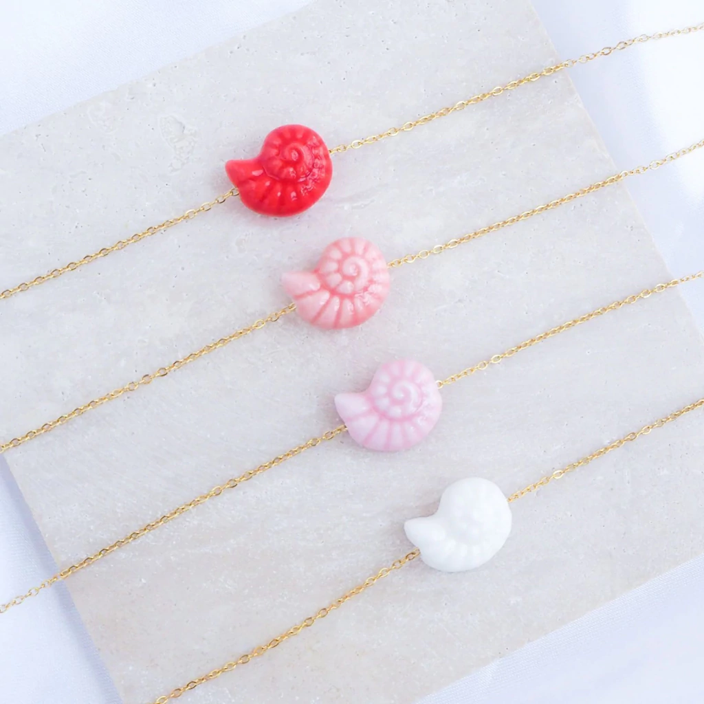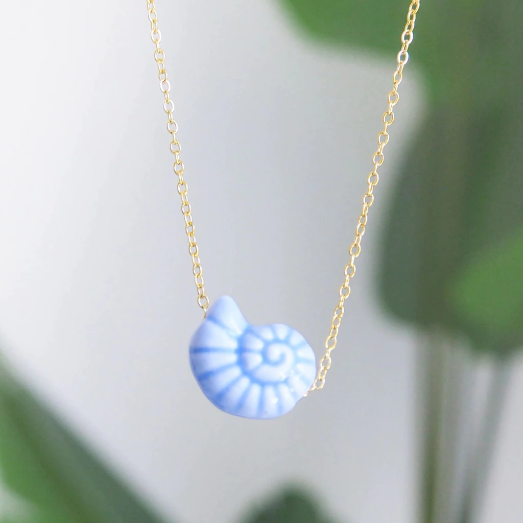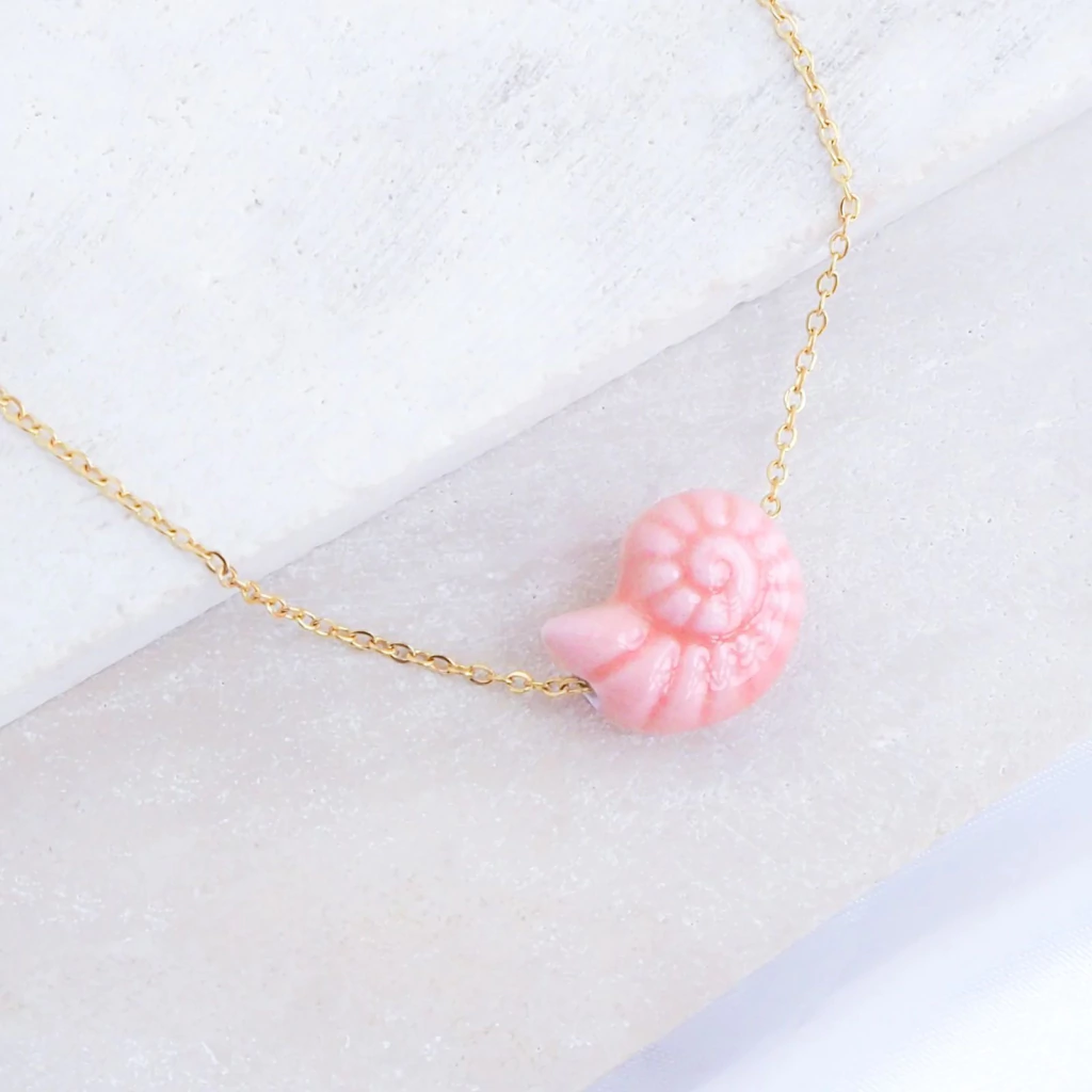 Acabamento, detalhes e corrente banhados a ouro ou a ródio branco - concha de cerâmica