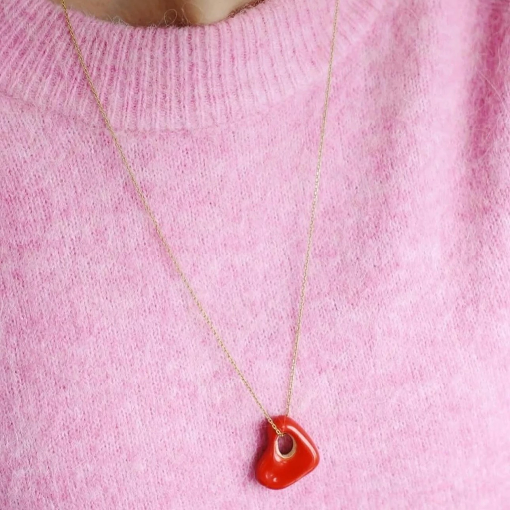 Pingente de Cerâmica - corrente e acabamento banhados a ouro ou a ródio branco